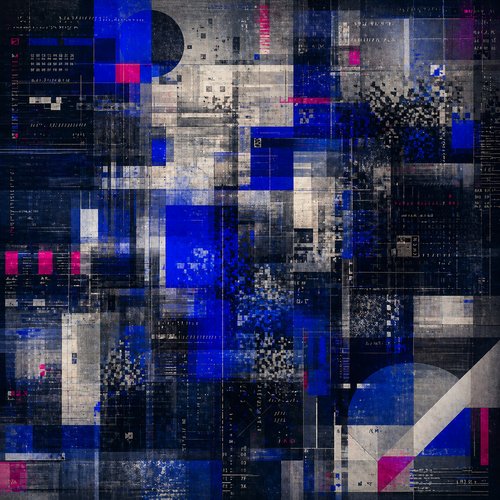 Composición algorítmica abstracta sobre la teoría de Lev Manovich y la imagen como objeto computacional.