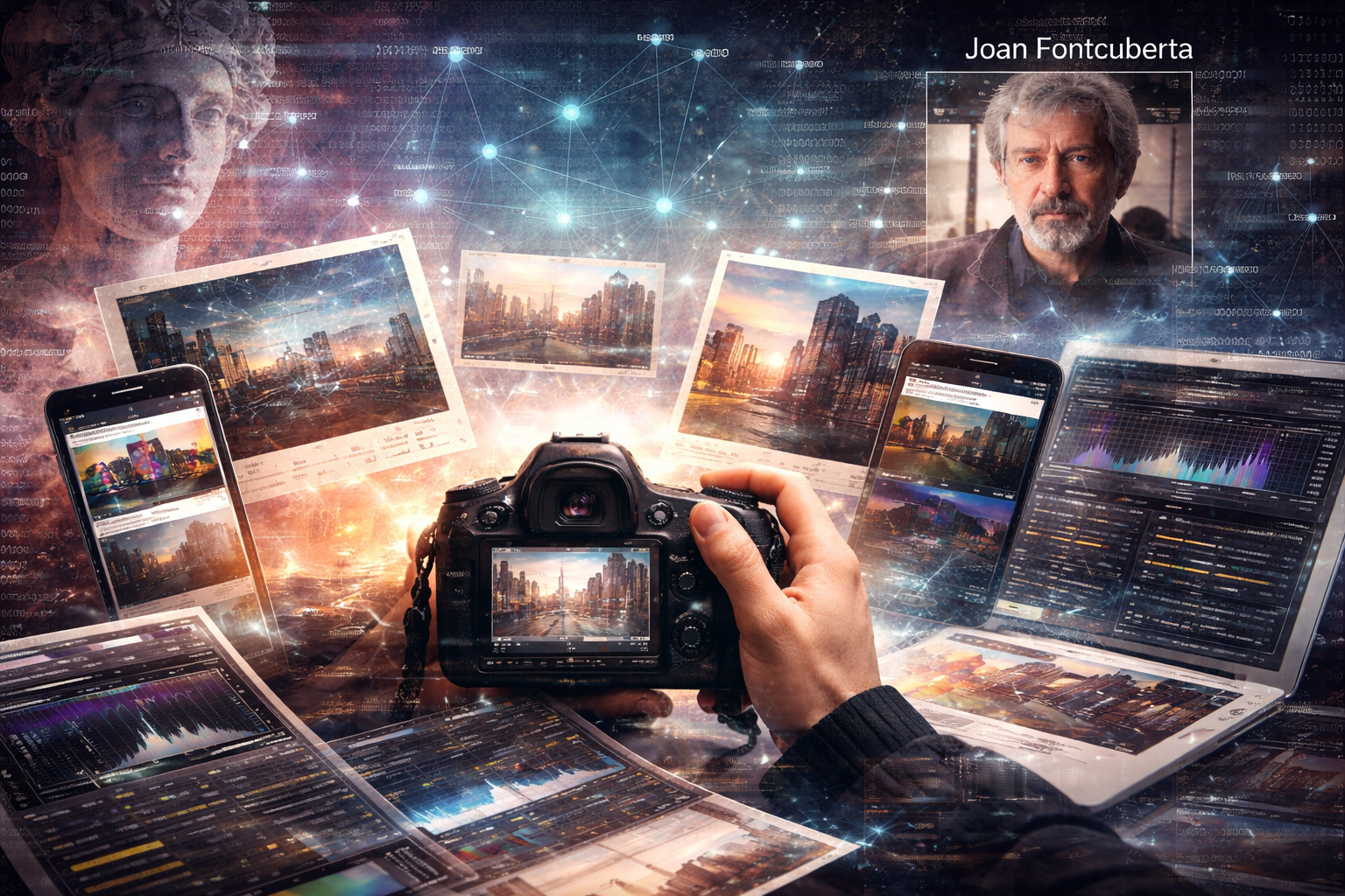 En este marco, la cámara pierde su centralidad simbólica. Fotografiar no es sólo captar, sino seleccionar, editar, archivar, redistribuir y, en muchos casos, reapropiarse de imágenes preexistentes. La postfotografía asume que vivimos inmersos en un flujo visual incesante y que toda nueva imagen dialoga inevitablemente con otras anteriores. Autores como Joan Fontcuberta han sido fundamentales para articular este desplazamiento crítico, al señalar cómo la fotografía funciona más como construcción cultural que como prueba objetiva. Su pensamiento desmonta la confianza ciega en la imagen y pone el foco en los dispositivos técnicos, institucionales y narrativos que sostienen su credibilidad.